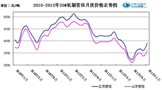 1月江蘇20#軋制管坯月均報價4120元/噸,和上月月均報價相比上漲200元/噸,山東20#軋制管坯報價3800元/噸,比上月月均報價上漲了230元/噸。分時間段來看,上旬管坯價格持續(xù)走高,中旬小幅下探,下旬穩(wěn)中盤整運行。作為冶金原料之一的鐵礦石價格大幅拉漲后波動運行,現(xiàn)京唐港進口的63.5%的印度粉礦1050-1060元/噸,原材料價格的拉漲,使管坯價格跟漲明顯。從其下游來看,無縫管市場價格上行,但因市場成交低迷,貿(mào)易商觀望情緒濃重,進貨仍顯謹慎,對管坯價格的拉動作用不強。因冶金原料價格堅挺運行,對管坯價格起到一定的支撐作用,短期內(nèi)管坯價格穩(wěn)中小幅波動運行的可能性較大。